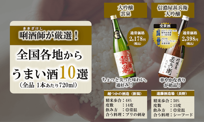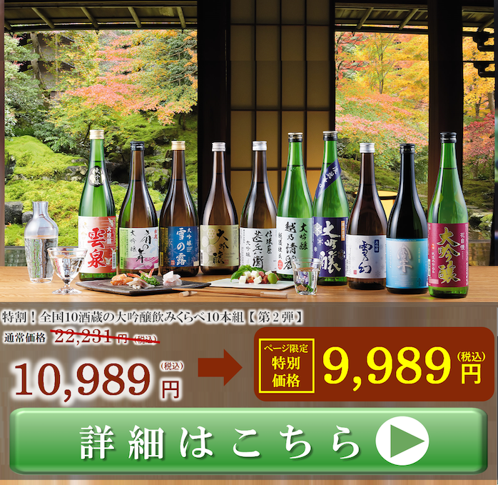 他では、この品質・価格で大吟醸10本は手に入らないため、売り切れる前に早めの購入がおすすめだ。