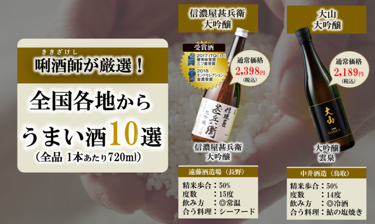 そんな理念に共感した全国「10酒蔵」の蔵元から、珠玉の大吟醸がラインナップされている。