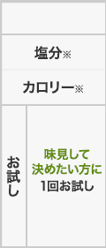 各商品ページには塩分・カロリーの表記をしているので、ご自身に合った商品をお選びいただけます。