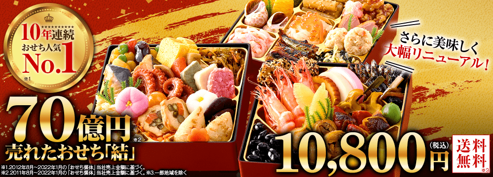 昨年完売した最高傑作をさらに美味しくリニューアル!少人数で本格的な和おせち。ベルーナおせち不動の人気「結」!