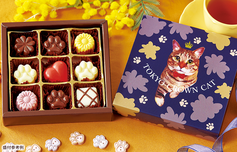 20種類のバラエティーあふれるチョコレート。ゴンチャロフ×ベルーナ初オリジナルパッケージ!弊社デザイナーが書き下ろしたかわいらしい猫が住む、素敵なお庭のパッケージ!