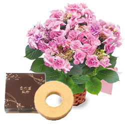 ≪早期割引≫あじさい フェアリーアイ+バウムクーヘンセット【母の日お届け】