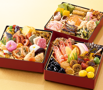 和風の定番献立から、産地・素材・調理方法にこだわった結オリジナル献立まで、三段のお重にぎっしりと詰め込みました。リピート率No.1(※)と大好評のおせちです!大満足の声が多く届いてます!