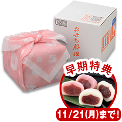 内容量 :オリジナルおせち結/和三段重 /約2-3人前/全45種 (盛付済)/【早期特典】紅白祝いだんご/風呂敷付