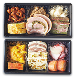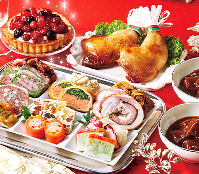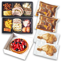 内容量 :チキン130g×2袋、ビーフシチュー180g×2袋、オードブル12種(6種×2パック)、3種のベリ―タルト1台(直径9cm前後)