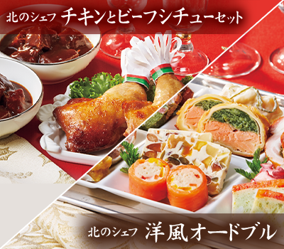 “プロの味をご家庭で”をコンセプトに立ち上げた『北のシェフ』ブランド。和洋中のシェフによるオリジナルレシピのオードブルやシチューなど見た目も華やかでボリューム抜群!