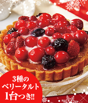 こちらの豪華オードブルセットをご購入いただきますと、なんと!クランベリー、いちご、ブルーベリーの3種のベリーを盛り付けた見た目も可愛いタルトを、もれなく1台おつけします。もちろん、味もホテルクオリティーです!