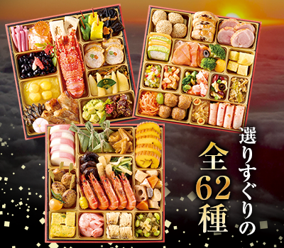 内容量 :和洋中三段重/約4-5人前/全62種/風呂敷付き