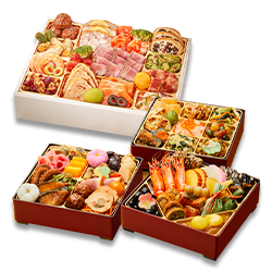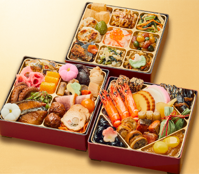 和風の定番献立から、産地・素材・調理方法にこだわった結オリジナル献立まで、三段のお重にぎっしりと詰め込みました。リピート率No.1(※)と大好評のおせちです!大満足の声が多く届いてます!
