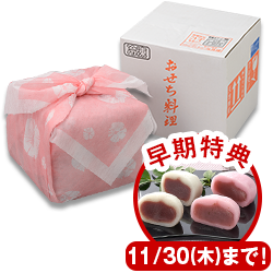 内容量 :●オリジナルおせち結/和三段重(盛付済)/約2-3人前/全45種/風呂敷付/◎特典:紅白祝いだんご