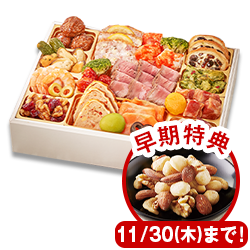 内容量 :●裏磐梯レイクリゾートホテル監修オードブル煌/洋風 長角一段重(盛付済)/約3―4人前/全23種/風呂敷付/◎特典:エクストラゴールドナッツ(50g)