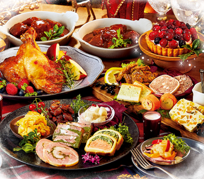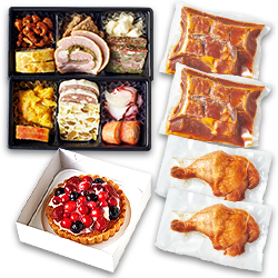 内容量 :ローストチキン130g×2袋、ビーフシチュー180g×2袋、オードブル12種(6種×2パック)、3種のベリータルト1台(直径9cm前後)