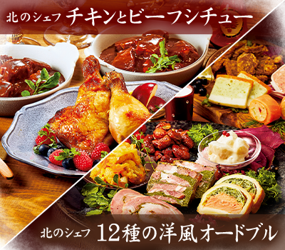 『北のシェフ』とは、“プロの味をご家庭で”をコンセプトにした北海道のブランド。和洋中のシェフが細部までこだわったオリジナルレシピのオードブルやシチューなど、見た目も華やかなワンランク上のオードブルセット!