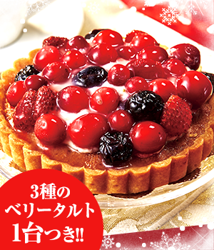 こちらの豪華オードブルセットをご購入いただきますと、なんと!いちご、クランベリー、ブルーベリーの3種のベリーを盛り付けた、見た目も可愛いらしいタルトを1台おつけします。もちろん、味もホテルクオリティーです!