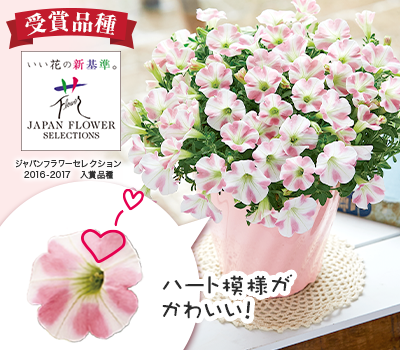 ジャパンフラワーセレクション2016-2017で入賞した、花弁にピンクのハート模様が入る品種。たくさんのハートはかわいいもの好きのお母さんにぴったり。思わず笑顔になるようなおすすめギフトです。