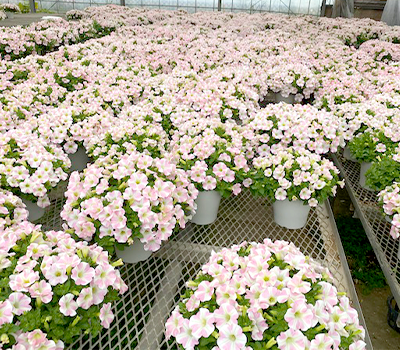 ハウスいっぱいに咲き誇る姿は圧巻!ももいろハートの花言葉は「咲きたての笑顔」。たくさんのハート柄で思わず笑顔になります。