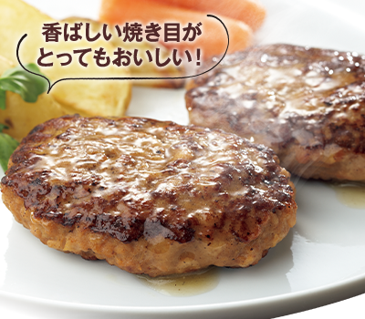 1個あたり60gと小さめのハンバーグながら、食べたときの満足度が高いです! 外側には程よい焼き目。まずはこれが食欲をかきたてます。そして加熱後、切れ目を入れると肉汁が溢れ、美味しい香りが漂ったらもう食欲も絶好調!この小さめハンバーグが秘める力をぜひ体感してみてください!