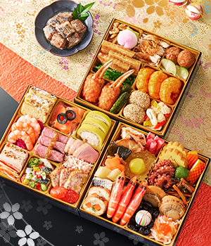伝統的な和の献立・お子様も食べやすい洋の献立、酒の肴にぴったりの中華の献立をぎっしり詰め込んだ豪華三段重!ご家族みんなで楽しめます。