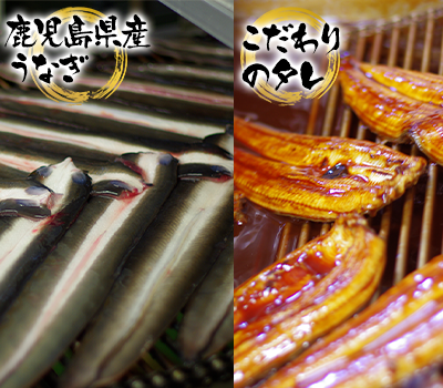 原料には生育からこだわった鹿児島県産のうなぎを使用しています。熟練の職人が個々に鰻用の包丁を持ち、活鰻を氷で一尾一尾冷やし静めた状態で加工をおこないます。2種の醤油をブレンドした薫タレを使用し、ふっくら丁寧に焼き上げています。こだわりの味を是非ご賞味ください!