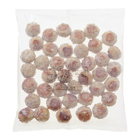 牛肉と豚肉のひき肉、玉ねぎでつくっ た、小さなハンバーグの中にチーズを入れました。