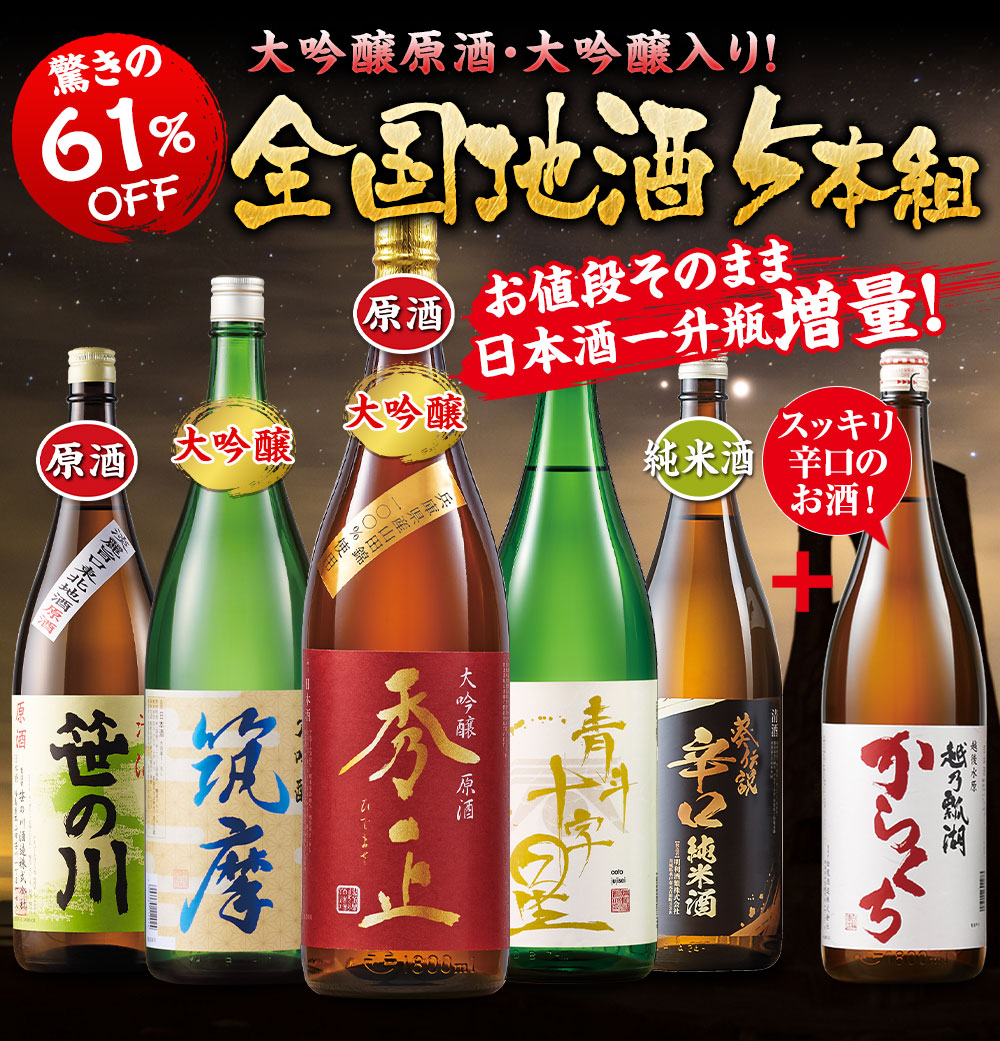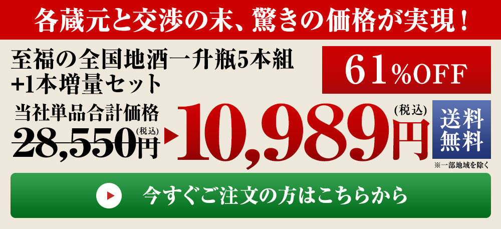 ≪62%OFF!≫至高の全国地酒一升瓶5本組+1本増量セット