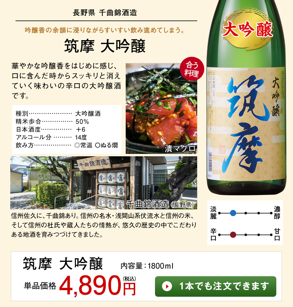 ■〈長野県〉千曲錦酒造【筑摩 大吟醸】