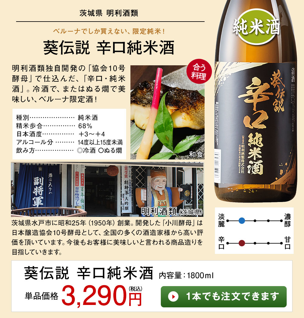 ■〈茨城県〉明利種類【葵伝説 辛口純米酒】