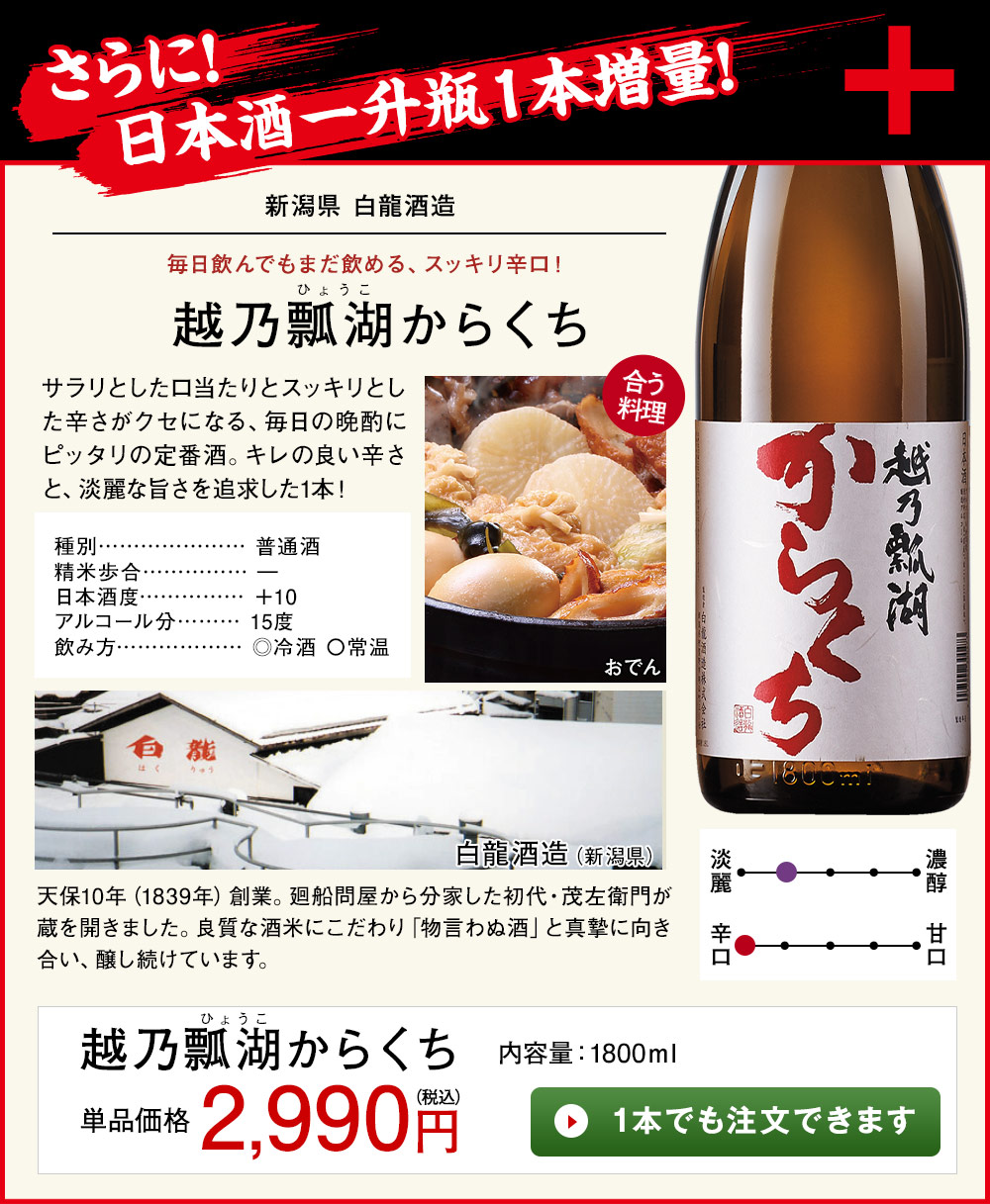 ■〈新潟県〉白龍酒造【越乃瓢湖からくち】