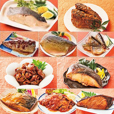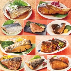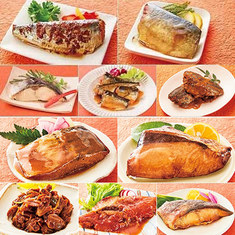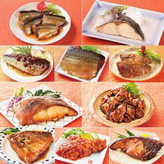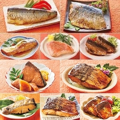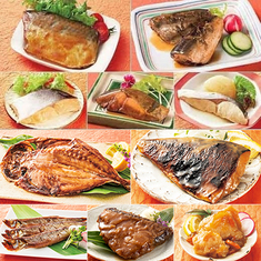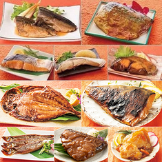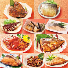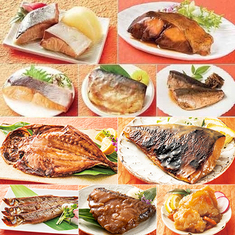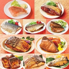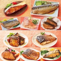 赤魚、銀ひらす、あじが加わって全8種類に。塩焼、照焼など定番の味付けを中心に多彩に楽しめます。