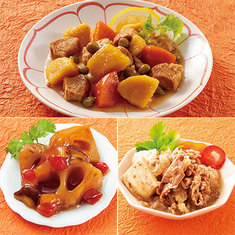 定番の肉じゃがからハッシュドビーフなどの洋食までバラエティ豊かにそろえました。