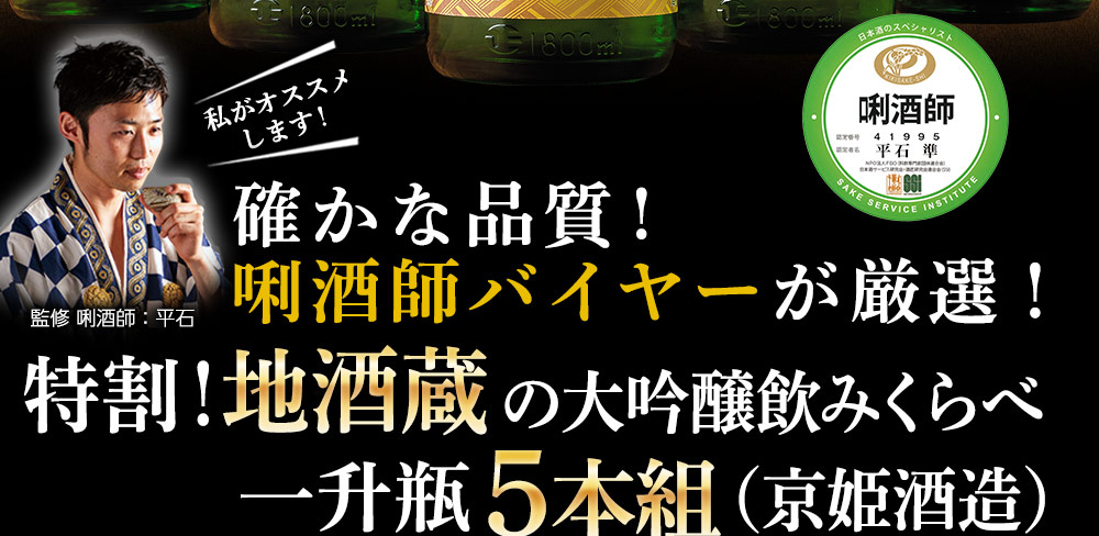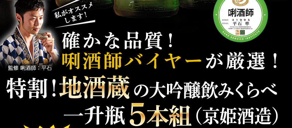 【驚きの56%OFF!】特割!地酒蔵の大吟醸飲みくらべ一升瓶5本組(京姫酒造)
