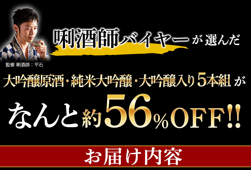 大吟醸、純米大吟醸、大吟醸原酒のオリジナル5本組!