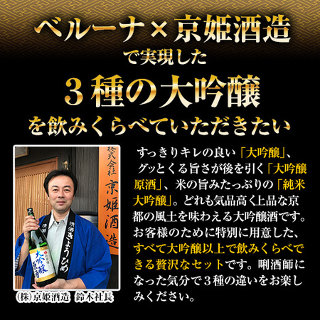 ≪ベルーナ×京姫酒造で実現!3種の大吟醸を飲みくらべていただきたい≫