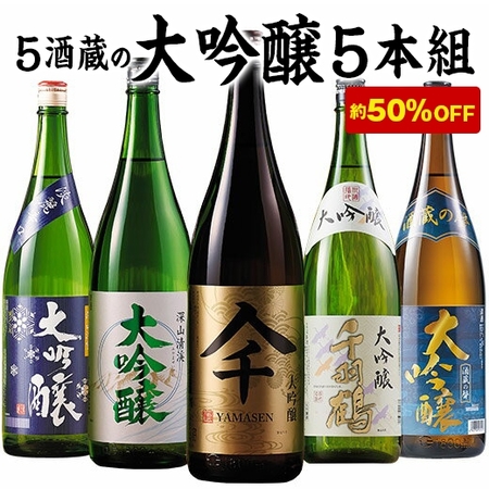 【約50%OFF!】第9弾 特割!5酒蔵の大吟醸飲みくらべ一升瓶5本組