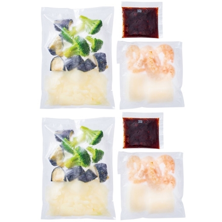 ●えび●いか●ブロッコリー●揚げなす●玉ねぎ◆2ー3人前×2セット◆調理時間約9分◎調理方法:炒める※写真は盛付参考例です。付け合わせ等は商品に含まれません。