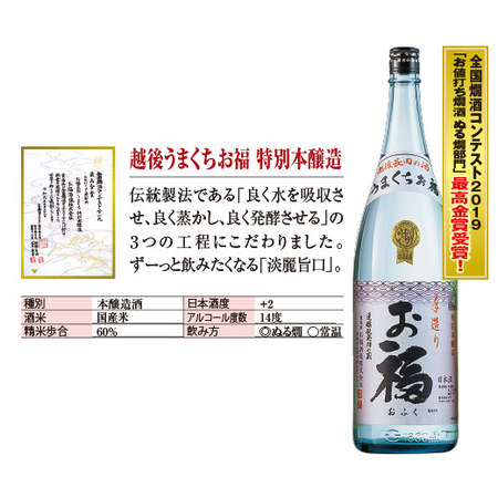 ■〈新潟県〉お福酒造【越後うまくちお福 特別本醸造】