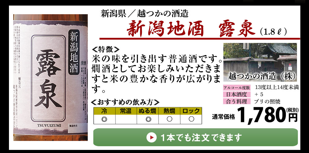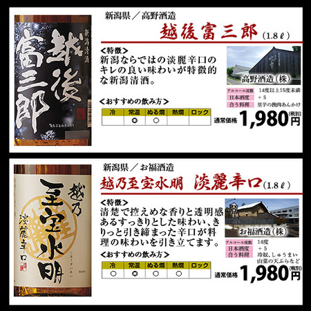 新潟ならではの淡麗辛口。キレの良い味わいが特長。