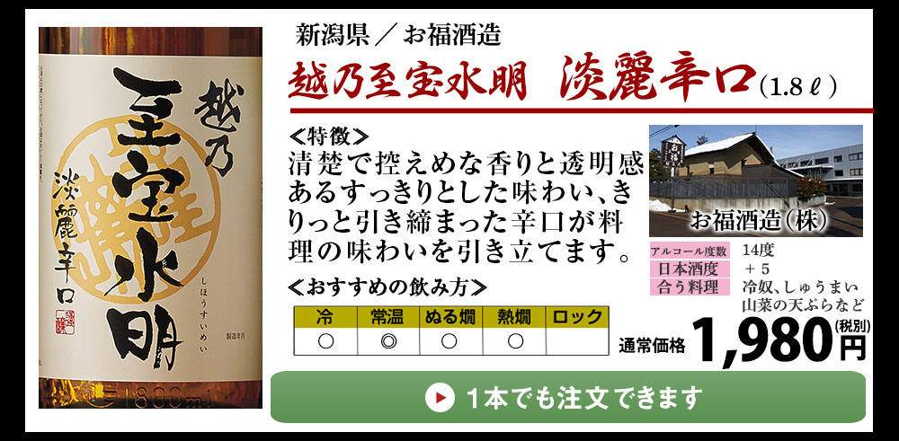■お福酒造【越乃至宝水明 淡麗辛口】