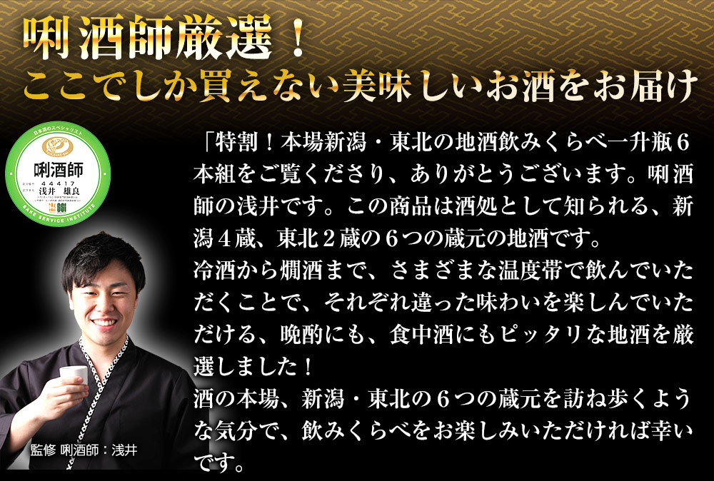 【約38%OFF!!】特割!本場新潟・東北の地酒飲みくらべ一升瓶6本組 10月末頃お届け