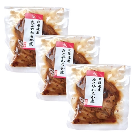 旨みが凝縮された継ぎ足しのタレで北海道産のタコをやわらかく炊きました。足と頭を使用しているため、それぞれの異なる食感を楽しめます。◎3袋※写真は盛付参考例です。付け合わせ等は商品に含まれません。