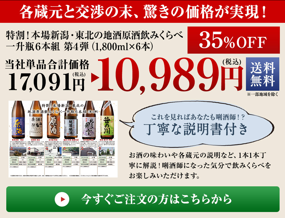 ≪約35%オフ!≫特割!本場新潟・東北の原酒飲みくらべ一升瓶6本組【第4弾】