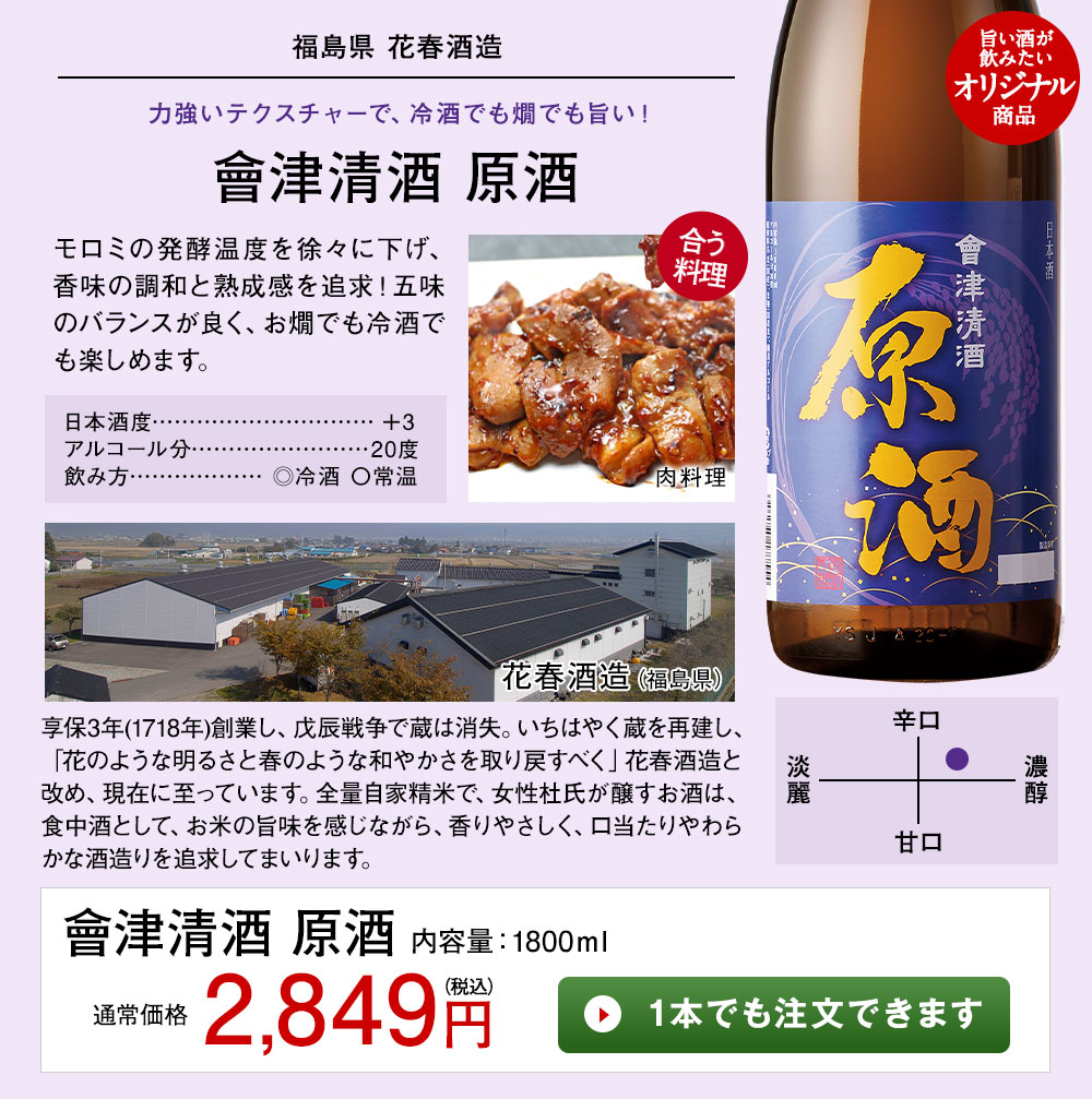 ■〈福島県〉花春酒造【會津清酒 原酒】