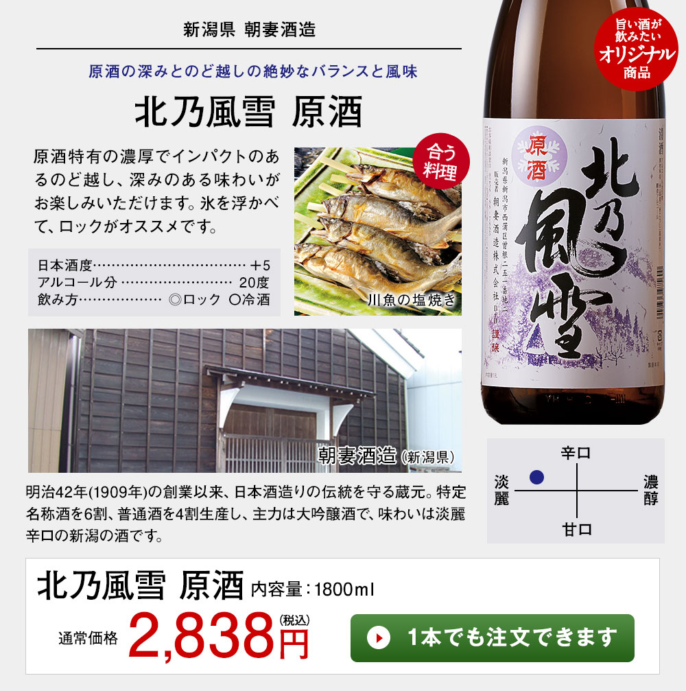 ■〈新潟県〉朝妻酒造【北乃風雪 原酒】