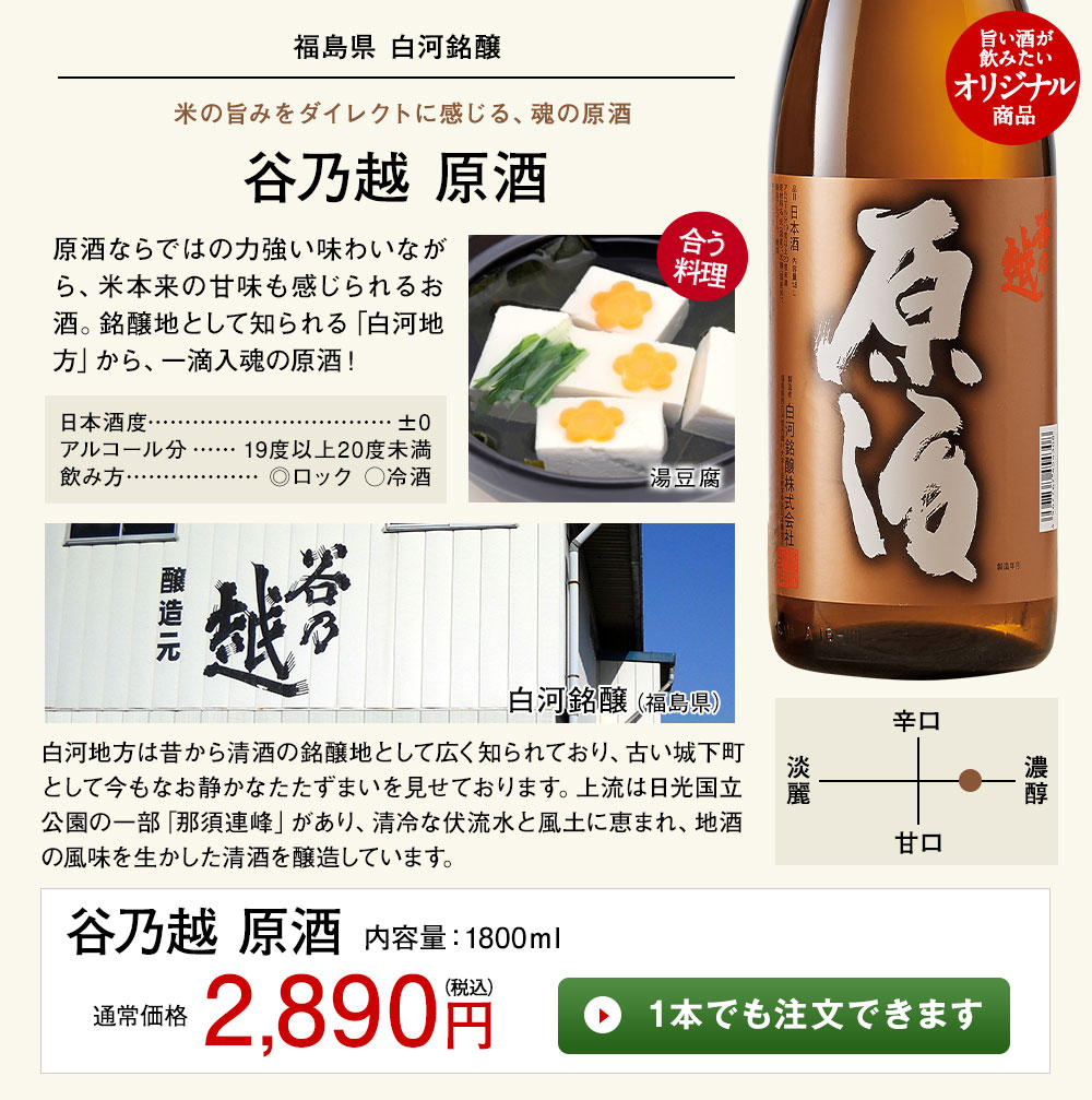 ■〈福島県〉白河銘醸【谷乃越 原酒】