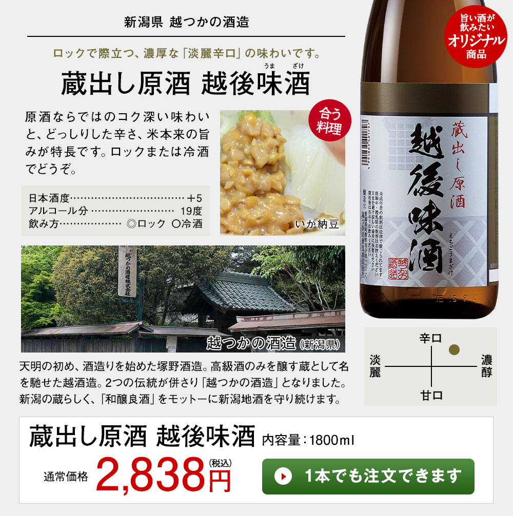 ■〈新潟県〉越つかの酒造【蔵出し原酒 越後味酒】