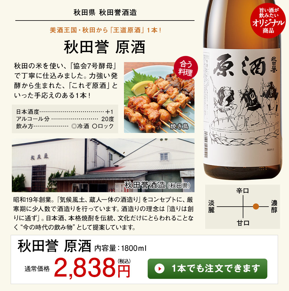 ■〈秋田県〉秋田誉酒造【秋田誉 原酒】