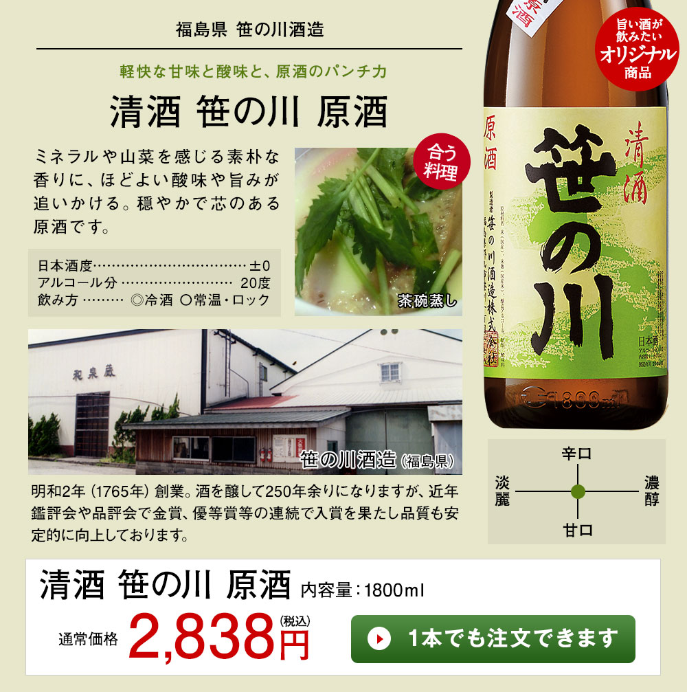 ■〈福島県〉笹の川酒造【清酒 笹の川 原酒】