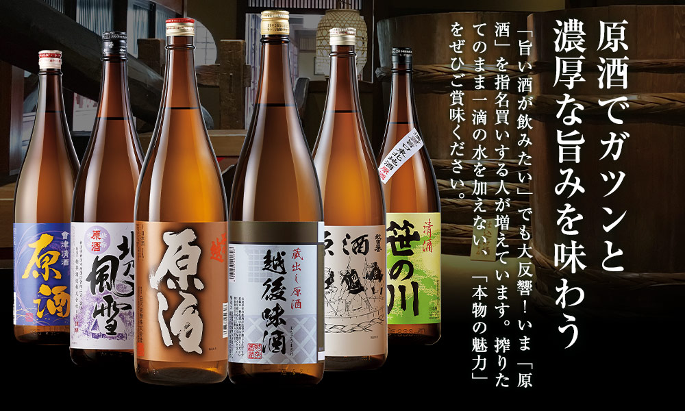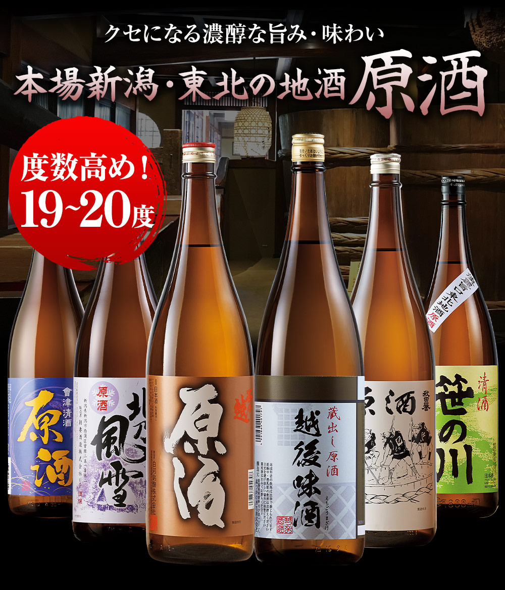 新潟3蔵・福島・岩手・山形1蔵ずつの計6つの蔵元から晩酌や食中酒にもピッタリな地酒を厳選しました。原酒ならではの濃厚でガツンとくる旨さを、6つの蔵元を訪ね歩くような気分でお楽しみください。