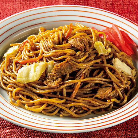 もっちりと弾力のある中細麺を直火 で炒め、昔ながらに甘くて香ばしく、コ クのある味わいに仕上げました。