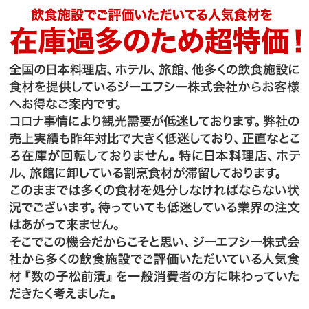 在庫過多の為超特価!数の子を約49%(製造時)使用した松前数の子です。